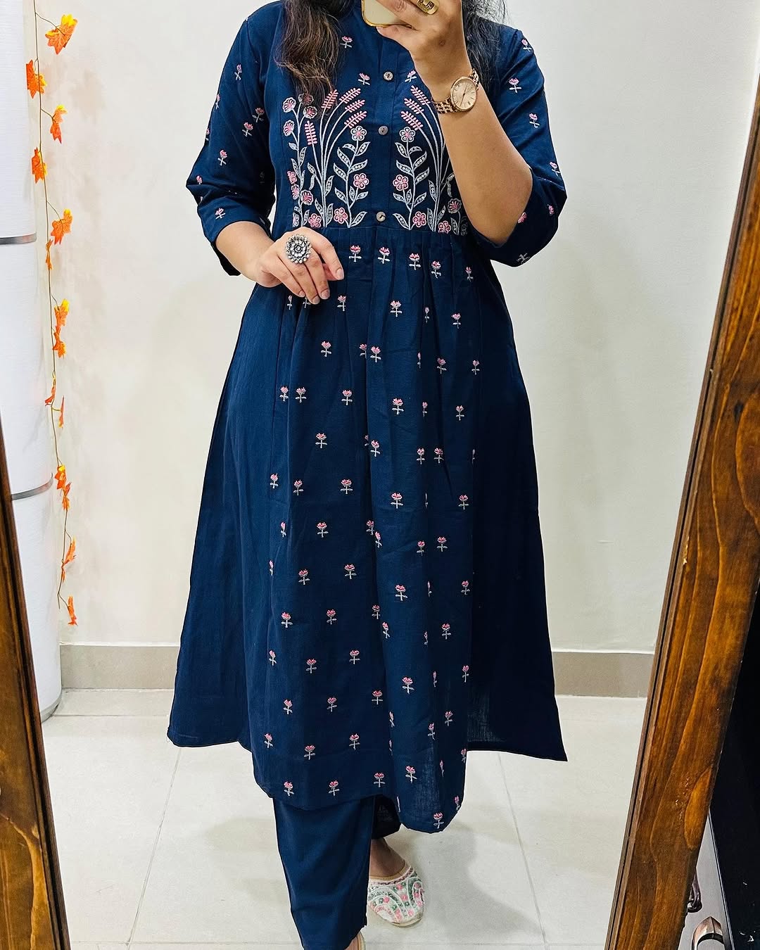 *🌹🌹Pure fine Cotton fabric Embroidery Work Kurti with Pant with cotton 100-100*🌹🌹*A-line*