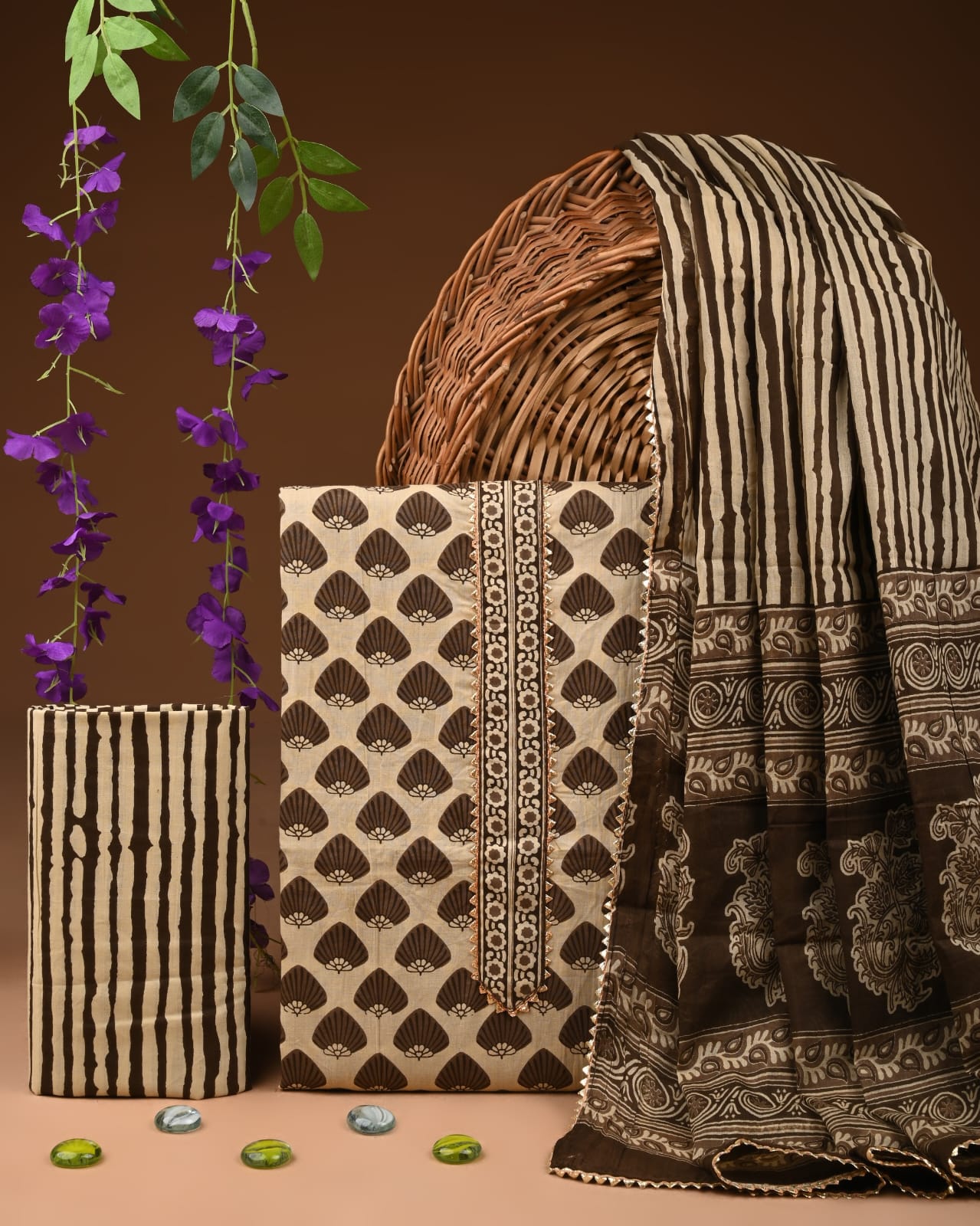 Cotton Suit with gota patti work, Cotton Botton & cotton Dupatta (Unstitched)