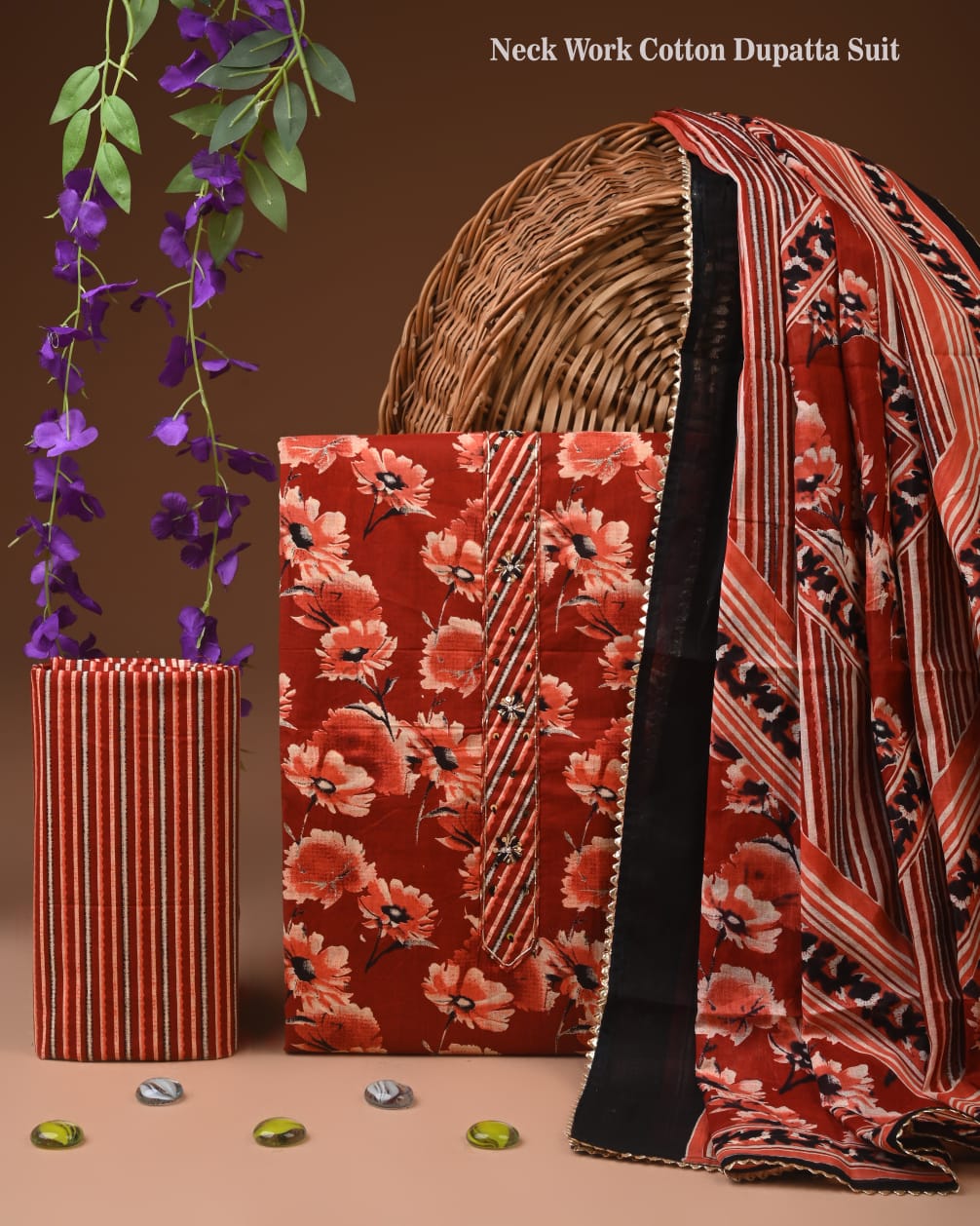 Cotton Suit with gota patti work, Cotton Botton & cotton Dupatta (Unstitched)