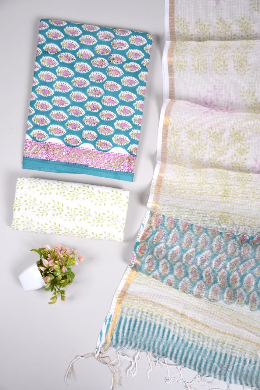 Premium Sanganeri Printed Cotton Suit With Kota Doria Duppta