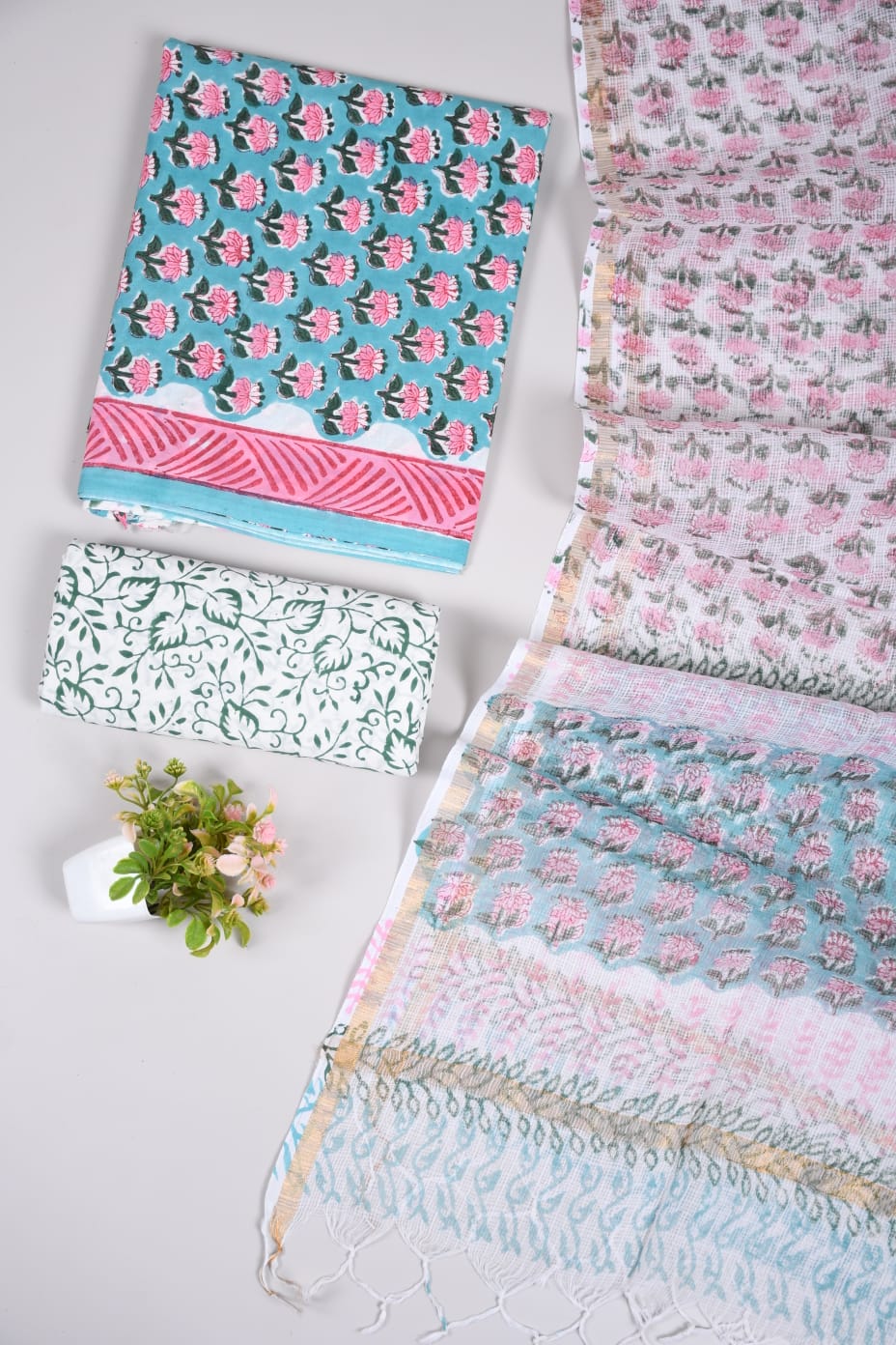 Premium Sanganeri Printed Cotton Suit With Kota Doria Duppta(BFCOTKD03)